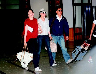 梁朝偉(右起)、劉嘉玲婚后首度在不丹露面,和林青霞大方面對鏡頭。