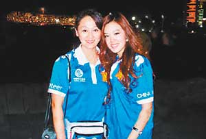 16日晚,夜幕下的鳥巢格外璀璨,而就在鳥巢南面的廣場上,同樣星光熠熠。在這里,搜狐娛樂的記者意外遇到了演員王姬,而此刻她的身份,是服務(wù)奧運(yùn)的城市志愿者,而她的身旁陪著個(gè)漂亮的姑娘。上前打招呼,果然,她就是王姬一直在美國讀書的大女兒——高曉天Angela。