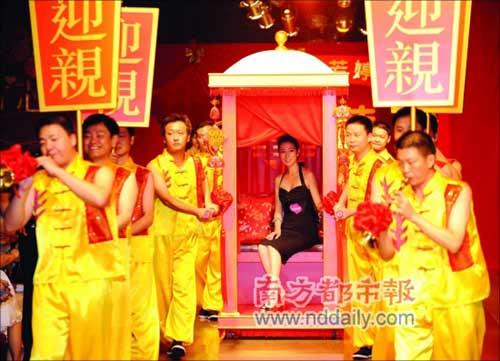 迎親隊伍魚貫而出,轎夫吹著嗩吶喜慶登場,四人花轎中坐著的“新娘”竟然是佘詩曼!前晚,無線當家花旦佘詩曼現身廣州,為某床上用品新推的婚慶產品做代言。正在休假的阿佘顯得特別滋潤,問及幾時將自己嫁出,她自言正忙于幫弟弟籌備婚禮,而自己則要等另一半出現再做打算。對于多年的“緋聞男友”陳浩民早前在節目中稱“曾有一段深刻的戀愛至今未能忘情”,佘詩曼就言簡義賅地回應道:“如果是曾經的(愛情)話應該就是曾經的了。”