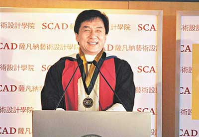 成龍日前獲美國薩瓦納藝術學院頒發名譽教授。