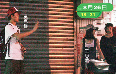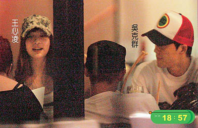 吳克群和提著大包小包的助理上車,之后又接了公司同事,三人一同來到八德路四段一間錄音室。十分鐘后,戴著白色棒球帽、個頭嬌小的王心凌,忽然出現(xiàn)在錄音室門口,悄悄進門。在錄音室待到晚上六點半,吳克群和王心凌先后走出來,在門口先和同事道別,接著兩人和助理一同坐上吳克群的休旅車,驅(qū)車前往慶城街的一家餐廳。