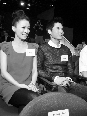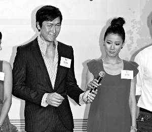 被現(xiàn)場(chǎng)媒體起哄合影,佘詩(shī)曼臉紅,鄭嘉穎笑容僵硬。馬婷 攝