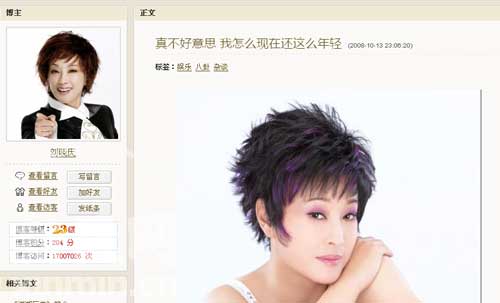 10月13日凌晨,57歲的劉曉慶用一篇博文《對不起,我怎么現在還這么年輕》回應整容傳聞,再三強調自己是“純天然”容貌。她在博客中說:自己現在仍然這么年輕健康、充滿活力、陽光燦爛,好像挺對不起大家似的。