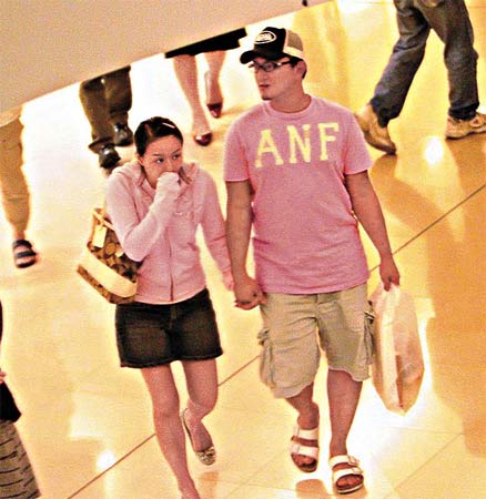 穿上粉紅色情侶裝的陳思慧與Larry,前晚約11時半現身觀塘apm美食廣場,Larry明顯發福,相信是因為他與陳思慧的生活相當開心愜意,以致身形暴脹。現場所見,陳思慧不時掩嘴,小動作多多,手上未有戴上結婚戒指,月前有傳她取消婚宴后,已跟Larry在外地注冊結婚,不過陳思慧既未戴婚戒,相信二人仍未選定婚期。