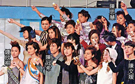 02年陳思慧與陳冠希、鐘欣桐及陳文媛一起出席無線音樂節目宣傳活動。