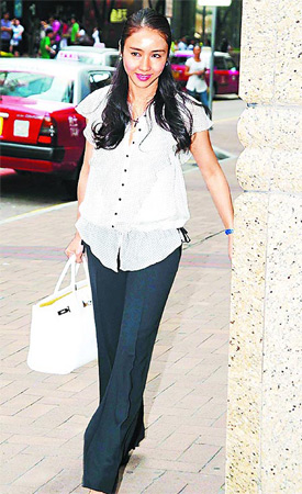 黎姿宣告退隱后,拎著HERMES柏金包到弟弟的美容院上班。