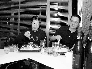 當(dāng)晚,除了慶祝郭富城的生日,還預(yù)祝同是天蝎座的美術(shù)大師張叔平的生日,并趁機(jī)慰勞演唱會的一群幕后功臣,慶祝演唱會成功獲吉尼斯大獎(jiǎng)。工作人員還安排了紫紅色葡萄酒香檳為郭富城慶祝,喻意希望大家在工作上都大紅大紫、事事順利。而當(dāng)天的兩則消息則印證了事業(yè)順利:除了《舞林正傳》DVD熱賣外,臺北兩場小巨蛋演唱會的售票也十分成功,半天就賣了五成,而中午更令訂票網(wǎng)絡(luò)大塞車,使主辦者邱瓈寬笑逐顏開。郭富城表示,臺灣演唱會反應(yīng)良好是很好的生日禮物。而郭富城的經(jīng)理人小美和同事們今年送禮玩新意思,將預(yù)算買禮物給城城的錢,以他的名義捐了去老人院。(記者 葉毅)