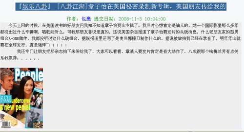 有網(wǎng)友稱章子怡將出首張專輯。(網(wǎng)上截圖)