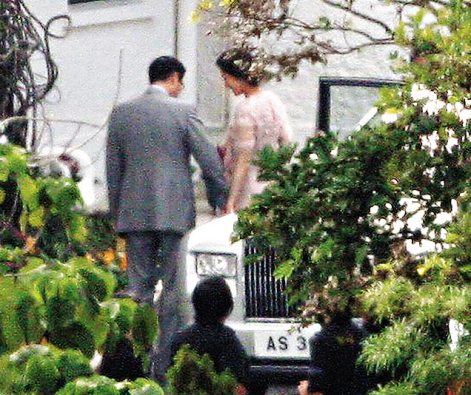 一對(duì)新人的家長(zhǎng)分別在下午4時(shí)半到,李嘉欣的媽咪由一名男士陪同,乘坐一輛車(chē)牌XX600的奔馳房車(chē)到來(lái),而嘉欣的滿(mǎn)面笑容的胞姊李嘉明,跟隨花車(chē)乘坐一輛白色七人車(chē)到達(dá)大宅,但其葡萄牙籍的父親因?yàn)榕c李母離異多年,與嘉欣已甚少聯(lián)絡(luò),即使嘉欣結(jié)婚之喜也未有出席。