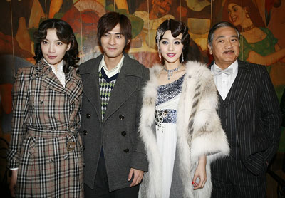 范冰冰擔(dān)任制片人的第二部電視劇《金大班的最后一夜》正在上海熱拍,劇組昨日在楊浦區(qū)的一棟洋房?jī)?nèi)組織媒體探班,范冰冰偕男主角周渝民、方中信、黃少祺、秦沛等以劇中造型出現(xiàn)在媒體面前。在采訪中,老板兼演員的范冰冰以及首次出演年代戲的仔仔周渝民成為媒體關(guān)注的焦點(diǎn),兩人表現(xiàn)出“相見(jiàn)恨晚”的樣子,難怪仔仔最后被問(wèn)到是否會(huì)與大S復(fù)和的消息,仔仔很肯定地說(shuō):“沒(méi)有”。