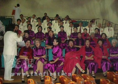 記者采訪時獲悉,前日凌晨1時,老人們才從央視排練結束,回到駐地,昨晨6點就起床集合。上午10時,合唱團全體成員再次走進央視,做彩排前的化妝造型準備。幾乎零睡眠的休息狀態,著實讓人擔心,但領隊說,老人們想到真的要上春晚,前夜興奮得都沒睡好覺。當記者夸贊老人們白色西裝和紫色旗袍的演出服漂亮時,領隊頗有些得意地說:“我們之前準備了9套半服裝,光是女團員的旗袍顏色就有好幾種選擇,還為男團員分別準備了領花和領帶,以備春晚導演選擇!痹瓉砗铣獔F來京前,領隊就把演出服的顏色和相關樣式通過網絡發給了導演組,得到首肯后,只用了短短兩天,就趕制出來。正式上臺前的數個小時里,老人們一絲不茍地在演播廳外練唱,甚至連上臺時的臺步都反復排練。
