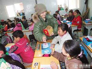 昨日,成都《新潮生活周刊》以《死于硬盤 生于硬盤》為題曝光了一批鐘欣桐(阿嬌)年前往北川賑災(zāi)的圖片,記錄了她探訪重災(zāi)區(qū)北川的鄉(xiāng)村小學(xué)的全過程。該小學(xué)的校長透露,阿嬌的和藹可親得到了孩子們認(rèn)可,其中一張圖片里,阿嬌還親切地給一個(gè)婦女背上的女孩子喂桔子。據(jù)采寫該報(bào)道的記者透露,這組照片其實(shí)是得自一個(gè)遺落在當(dāng)?shù)鼐瓢傻挠脖P。