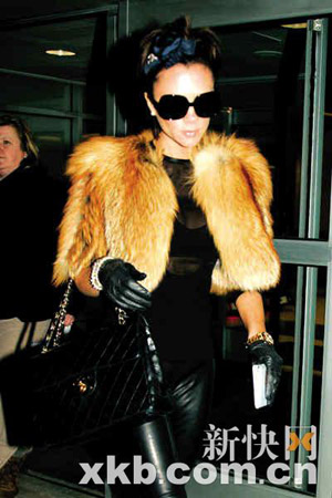 日前,維多利亞出現(xiàn)在紐約國際機場,包腿皮褲、性感蕾絲上衣外加皮草外套,整體造型非常搶眼,但唯一令人不解的是她頭上的藍(lán)色大花發(fā)夾,相當(dāng)雷人。