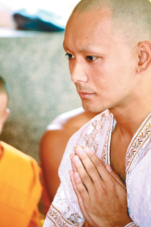 這15天中,Tae每天早上4點(diǎn)半起床念經(jīng),然后光腳到附近住家拿取米飯回寺廟,再到民宅念經(jīng)祈福。他在寺廟中沒有姓名也沒有階級(jí),日日跟著師父誦經(jīng)、打坐,他說:“我選在一個(gè)很偏僻的廟中出家,山上很冷,頂著光頭常讓我發(fā)抖,但因?yàn)檫@段時(shí)間我日日伴佛,心情變得很平靜。”