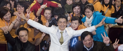 華仔天地”內(nèi)地首個(gè)分會(huì)——上海“華仔天地” 影音文化發(fā)展促進(jìn)會(huì)成立大典昨日在上海東方藝術(shù)中心舉行,“大家長(zhǎng)”劉德華乘坐“Andy World Club”巴士亮相與FANS互動(dòng),現(xiàn)場(chǎng)高潮迭起。被FANS親切稱為老大的他變起魔術(shù)像模像樣,戲言“干脆我以后去當(dāng)魔術(shù)師吧”。在接受采訪時(shí),劉德華還透露自己確實(shí)曾跟寶島魔術(shù)師劉謙學(xué)藝,有望于一年后與周杰倫合作一部“魔術(shù)”電影。對(duì)于日前盛傳他將以與阿嬌同拍電影的方式支持晚輩復(fù)出一事,劉德華表示自己的確會(huì)支持阿嬌復(fù)出,但目前還沒(méi)有實(shí)際的計(jì)劃。