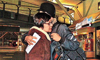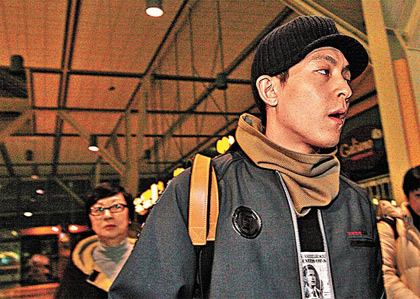 抵閘口時,Edison母子依依不舍深情擁抱,Edison跟母親說聲“Take care(保重)”后便由公司同事陪伴入閘,兩保鏢未有隨行。據知Edison乘坐的是國泰航班商務客位。