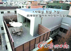據(jù)職員透露,金某招待客人的場所一般是在企劃室一層的紅酒吧,不過有時還會用到3層以及外部的空間。接受招待的一般是電視臺的導演和電影制作人以及政、經(jīng)界的人物,而參與招待的大部分是經(jīng)紀公司的女演員。據(jù)悉,3層是由房間和涼臺構成,房間是按照酒店一樣裝修的,浴室和寢室都具備,房間和涼臺是相連的。酒會和生日派對一般都在這里舉行。