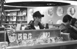 解約官司纏身的陳楚生當天身穿黑色羽絨服,黑色帽檐拉得很低,腳穿白色休閑鞋,靜靜地站在顧客中看書并不是很顯眼。起初正在看碟的記者并沒有注意到陳楚生,直到迎面走過時才認出他。