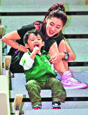 張柏芝此次臺北之行所到之處都受到追捧,前天在籃球館卻不及兒子Lucas搶鏡。Lucas不時在場內奔跑,不少球迷更專程和他合影。張柏芝一直跟在兒子后面照顧。球賽開始后兩母子在場邊觀戰,Lucas雙手拿著加油棒,還隨現場音樂搖擺,張柏芝笑言:“他獅子座,非?释蠹叶及蜒酃饩奂剿砩!