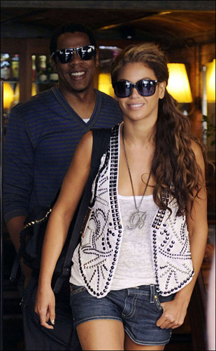 5月21日和老公外出吃飯的碧昂斯身穿無袖的白色低胸背心,胸前配了長款的HIP HOP項(xiàng)鏈,外面搭配了現(xiàn)在最火爆的背心,上面鑲嵌著鉚釘,下身則是超短的牛仔熱褲,腳上穿了黑色的進(jìn)化版角斗士超高跟涼鞋,顯得雙腿修長,整個(gè)人也瘦了很多,實(shí)在是漂亮。