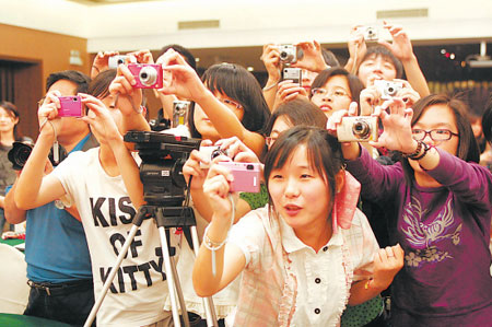 一分鐘內,包裹著劉謙的人群,像只巨大的毛線團,逐漸消失在宴會廳側門。主席臺上,幾位“粉絲”有幸搶到了劉謙桌上的涂鴉紙,上書“山外青山樓外樓”,再問發布會的內容,他們早已興奮地答非所問:“他收了我們送的粽子。”