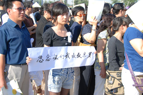 一名看起來(lái)80后的小姑娘手拿著橫幅“羅京叔叔我們懷念您”吸引大批媒體的目光,穿著牛仔短褲的她,低聲不語(yǔ),站在原地?cái)?shù)分鐘,仍由拍照。