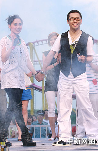 不同的是,這次阿嬌的出現雖然少了阿SA,但非孤單一人。記者發現,阿嬌自始至終與藝人姜鵬在一起,二人不管臺上臺下都是牽手同行,而且表情時有曖昧。