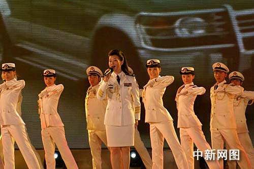 中新網湛江7月28日電 (徐建恩 劉靖)二十七日晚,海軍政治部文工團團長高山、副團長宋祖英率領的“文化服務海疆萬里行”文藝演出隊,在湛江某軍港進行專場演出,慰問南海艦隊駐湛官兵。