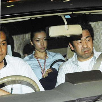 酒井法子乘坐在將她從富坂警察署向澀谷警察署移送的警車后排座位上。她上身著一件極其樸素的襯衫,完全沒有了昔日的星之光芒。(《日本新華僑報》圖片)