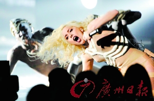 舞臺(tái)上,雖然她并不是提名最多的歌手,但有她在的舞臺(tái)永遠(yuǎn)都是最有看點(diǎn)的。比如說Lady Gaga 表演白骨纏身,乳色衣服制造“裸體”假象。除此之外,久未露面的拉丁天后詹妮弗·洛佩茲也登臺(tái)獻(xiàn)唱。