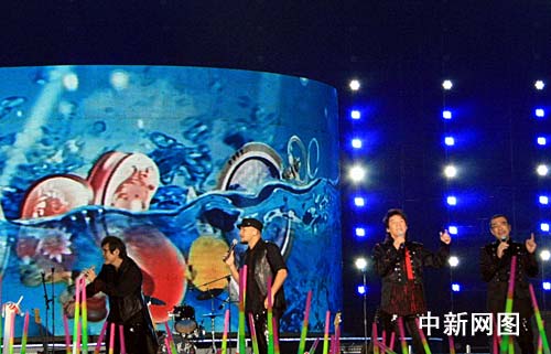 中新網海口12月31日電 (記者 關向東) “縱貫線生在臺北,縱貫線兄弟姐妹,嘿——嘿——嘿——,穿越過千山萬水,飛躍那東南西北,大家來真情體會……”,三十日晚,四個大男人,一條“縱貫線”,李宗盛、周華健、羅大佑、張震岳登上了海口“歡樂行-新跨越•新夢想”的舞臺,引發海南島萬人歌迷歲末狂歡。