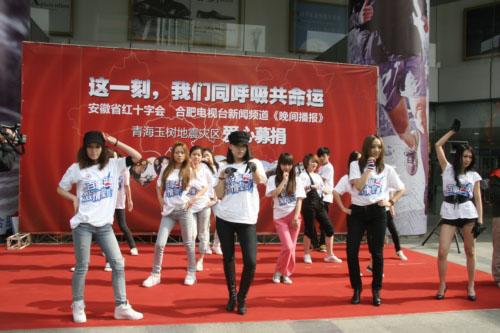 與選手們的想法不謀而合,主辦方粉絲網(wǎng)更無時無刻不在關(guān)注著玉樹。選手們?nèi)缭讣尤氲接砂不帐〖t十字會、合肥電視臺新聞頻道《晚間播報》舉辦的“這一刻,我們同呼吸共命運”青海玉樹地震災(zāi)區(qū)愛心募捐義演中!拔覀兿Mㄟ^這種方式告訴更多同胞,只要我們的心在一起,再大的災(zāi)難也能扛過去!币晃贿x手說。