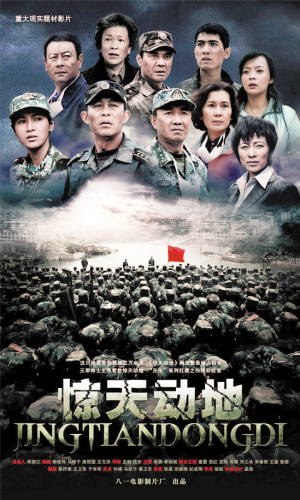 在紀(jì)念汶川大地震一周年之際,八一電影制片廠舉行了再現(xiàn)部隊(duì)官兵抗震救災(zāi)的故事片《驚天動(dòng)地》的看片會(huì)。參拍部隊(duì)和四川災(zāi)區(qū)群眾代表共同出席了看片會(huì)。