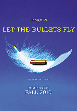 昨日,中國導演姜文的新片海報在戛納亮相。這幅簡潔而極具沖擊力的海報以子彈和羽毛為主構圖,英文片名《Let the bullets fly》(《讓子彈飛吧》)隨之曝光。海報上主打的概念“喜劇、西部、傳奇”,透露出這部新片可能會是一部與姜文以前作品不同的商業大片。