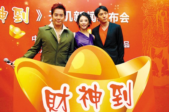 中新網10月22日電 電影《財神到》昨日在上海舉行開鏡發布會, 監制黃岳泰、導演阮世生率影片主角譚詠麟(阿倫)、張震、張雨綺出席。阿倫時隔24 年再演“財神”一角,在片中“送財”的他,生活中也不忘籌錢接濟成奎安(大傻)妻兒。