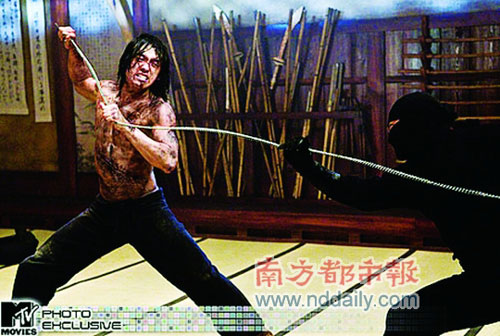 在《極速賽車手》中只是簡單客串,《忍者刺客》才是Rain主演的第一部好萊塢影片。首次挑起大梁,R ain“拼死拼活”。據他介紹,整部電影中九成以上的危險動作都是他親自上陣,“每天都拿著真正鋒利的刀在拍攝,8個月下來沒有毀容實在是萬幸。每天都很‘痛’很‘苦’,就差骨折了,天天都是青一塊紫一塊。”從劇照上還可以看到他為角色練就的一身肌肉。