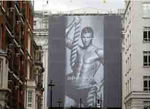中新網6月12日電 英國足球明星貝克漢姆(David Beckham)11日在英國倫敦百貨公司為名牌內衣造勢,吸引大批媒體和粉絲,而貝克漢姆半裸的性感海報曝光時,更是引來一陣尖叫。