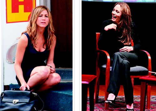 女星珍妮弗安妮斯頓則在美國紐澤西州的亞特蘭大拍攝新片時,手拿 Ferragamo本季最火紅的Sofia提包,一副看起來很投入情節(jié),以工作療情傷的態(tài)度。