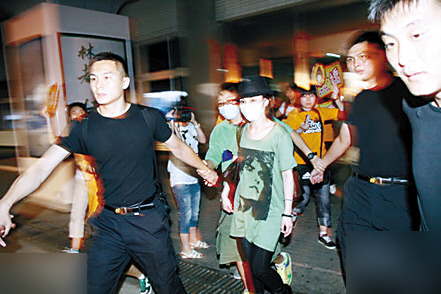 7月11日晚上7時,阿嬌抵達(dá)哈爾濱參加嘉年華活動。她出機(jī)場時頭戴禮帽,面戴口罩,二十多名貼身保鏢護(hù)駕。她身穿一件印有墨色男人頭像的大T恤,無獨(dú)有偶,陳冠希7月10日在香港出席陸永“棟篤笑”演出拜神儀式時,也穿著同款式T恤———這對舊情人真是心有靈犀!