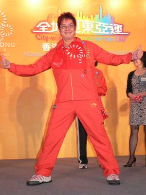 中新網(wǎng)12月1日電 譚詠麟昨日以一身紅裝及染紅發(fā)出席迎接?xùn)|亞運動會的活動,譚詠麟不僅在活動中透露兒子曉風(fēng)愛打籃球外,還對時下的娛樂熱點進行點評,更自曝曾遭女歌迷“胸襲”。