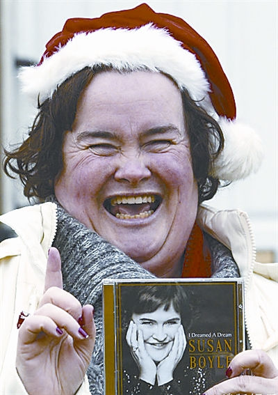 當(dāng)?shù)貢r(shí)間12月1日,蘇珊大媽在自家門前宣傳新CD,并且為粉絲簽名。她戴著紅色圣誕帽笑容可掬咧大嘴憨傻雷人,蘇珊大媽變“圣誕大嬸”造型滑稽引人笑。