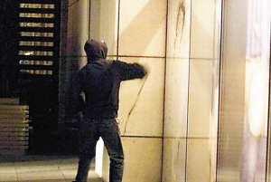 12月23日晚11點左右,在張曼玉訂婚的北京柏悅酒店外,一輛黑色奧迪Q7里下來四五個統一著迷彩樣服裝、戴著墨鏡的男子,走進酒店問大堂里的保安:“章子怡住幾層?”保安未予理會,這幾個人立刻站在酒店大堂內,用略帶東北口音的普通話高喊:“章子怡,大傻X!騙人錢!勾引人老公!”隨后離去。大約半小時后,這輛車又開到了酒店門前。車上下來兩個用套頭衫裹著自己的男子,手里拿著墨汁,走到酒店門東側一間章子怡代言的鉑金店門前,沖櫥窗里的章子怡海報潑了上去,然后撒腿跑向汽車。之后這輛車拉著警報離開。