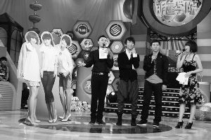 接下去開始錄明星和學員們配合表演的環節,逐一錄完后仍不見S.H.E出現,巫啟賢也似乎對她們的到場時間并沒太大把握,他說“如果節目錄完還到不了,我只好自己上臺唱《SUPER STAR》了!贝撕螅澞拷M只得搬出S.H.E真人大小的紙像,擺在臺上“參與”互動。