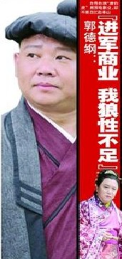 昨日,郭德綱接受本報專訪,說起是不是效仿趙本山,他表示自己“進軍商業狼性不足”。