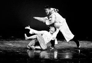 由于開篇背景介紹過多,前三幕戲略顯沉悶,演員努力抖出的包袱只換得稀稀拉拉的笑聲。