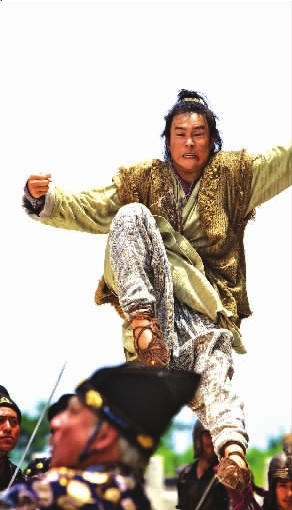 小沈陽在《大笑江湖》中飾演一名平凡小鞋匠,機(jī)緣巧合之下練就絕世武功,變成了一個勇于承擔(dān)的男子漢。既然是大俠當(dāng)然要會“飛”,而動作指導(dǎo)程小東也是個“大好人”,因此讓小沈陽開心地在天上飛來飛去一整天,圓了他飛天小俠的夢。程小東表示:“小沈陽作為二人轉(zhuǎn)演員還是有些功夫底子的,否則不可能吊在半空中一天還這么瀟灑,換作別人早送醫(yī)院了。”不過由于橫店天氣過于炎熱,小沈陽一遍遍拳打腳踢、跳躍騰挪,最終虛脫不起,也差點送醫(yī)院。記者邱晨通訊員趙佳
