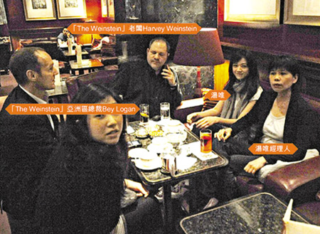 4月12日,湯唯與經(jīng)紀人及助手在香港中環(huán)文華東方酒店與“韋恩斯坦”老板Harvey Weinstein會面。現(xiàn)場所見,湯唯的英語非常流利。發(fā)現(xiàn)記者后,她面帶笑容,表現(xiàn)得體。在場的亞洲區(qū)總裁Bey Logan事后表示,Harvey Weinstein對湯唯大為贊嘆。Bey Logan說:“那天我們和湯唯只是一次很簡單的聚會,主要是想先了解一下她。她是一個不可多得的人才,會講廣東話、普通話和英文,很不錯。”問到是否已有好萊塢導演邀湯唯合作,他說:“一定有啦!如果有適合的角色,我們肯定會找湯唯。”