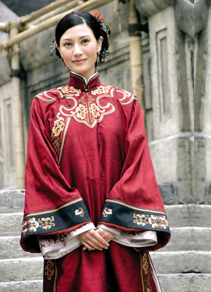 昨天,婚后首度拍戲的李嘉欣,穿一身華麗而又低調的酒紅色古裝出現,發(fā)髻盤起,淺笑吟吟,站在“舊中環(huán)”的石階上,回眸一笑百媚生。