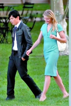 美國當(dāng)?shù)貢r間9月5日,周杰倫在洛杉磯拍攝電影《青蜂俠》。好萊塢影星卡梅隆·迪亞茲身穿藍色連衣裙,與周杰倫邊走邊聊,非常親密。