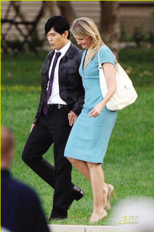 千呼萬喚始出來的《青蜂俠》于2009年9月5日在加州正式開機,在第一天的拍攝中,周杰倫和卡梅隆·迪亞茲有一段簡單的感情戲,拍攝時周杰倫敏捷身手,扶起險些跌倒的卡梅隆,上演了一出現(xiàn)實中的“英雄救美”。